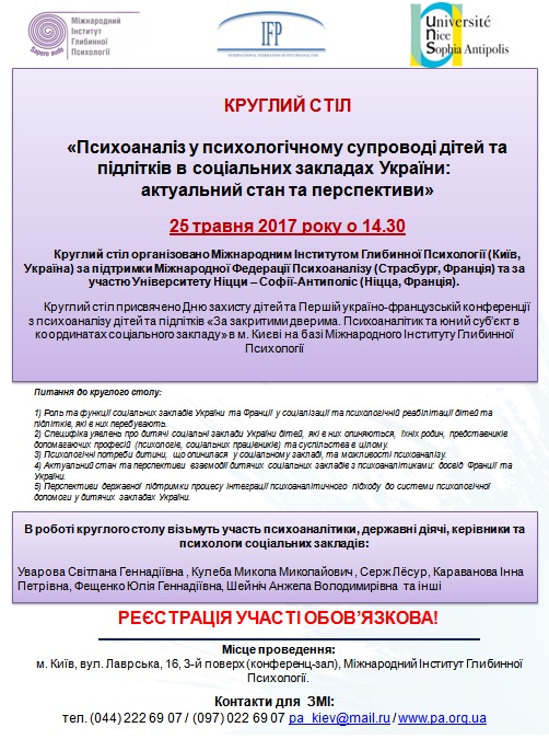 Уважаемые коллеги! приглашаем вас принять участие в закрытом мероприятии для членов УАП «Платонические диалоги о психоаналитической клинике» которое состоится 8 июня в 19.30 Этика Этика и мораль Этика или антимораль Конфликтность в психоаналитической клинике. Психоанализ и цифровой мир Диалог ведут: Уварова С.Г. — психоаналитик, кандидат наук, основатель и ректор Международного Института Глубинной Психологии, Президент, Председатель […]
