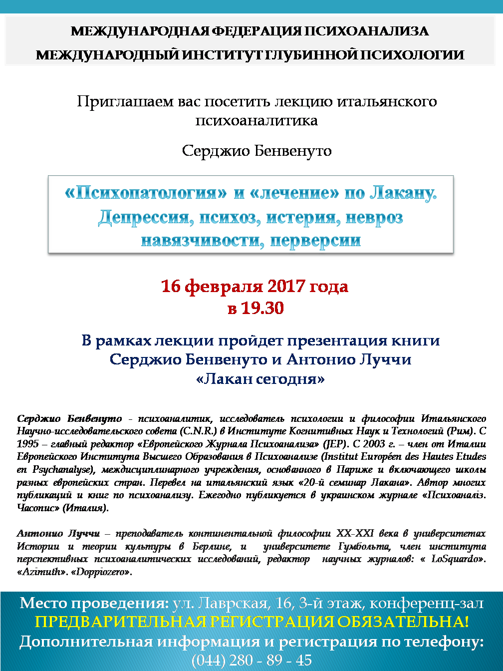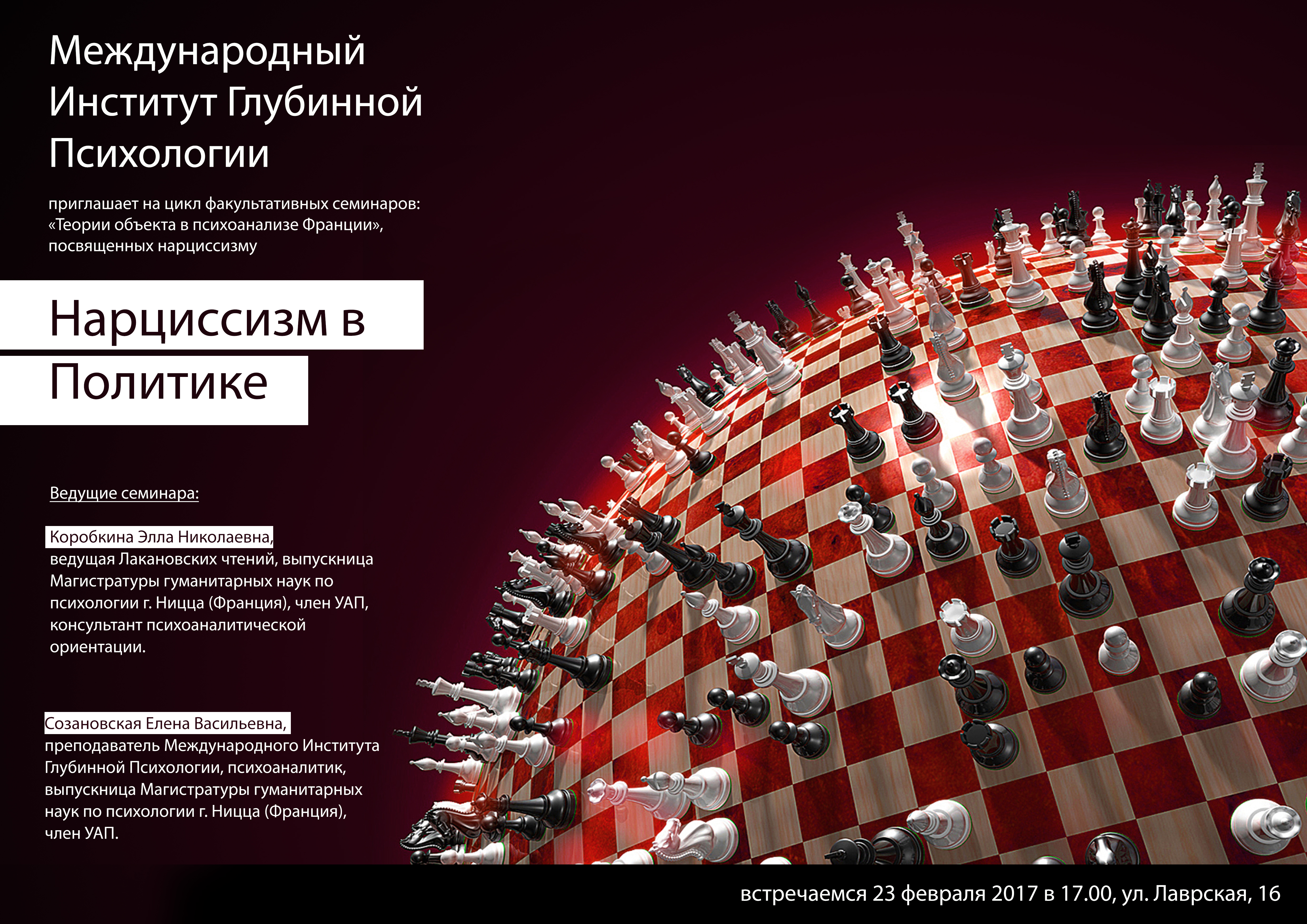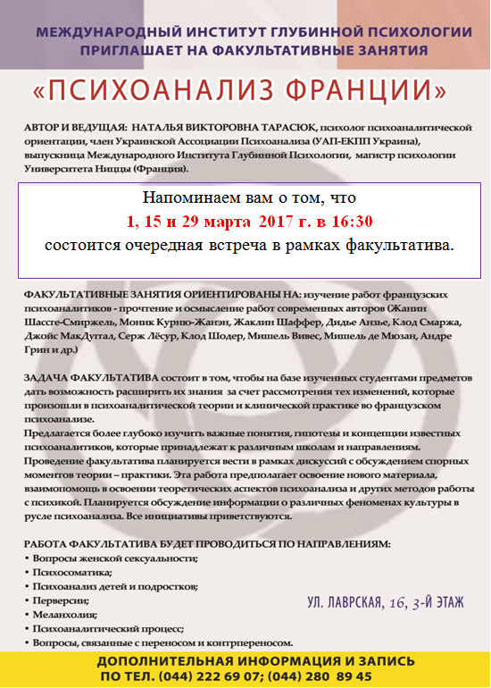 Дорогие друзья и коллеги! Все, кто любит писать стихи и все, кому нравится их слушать! В рамках цикла мероприятий «Психоаналитическая весна 2017»» приглашаем вас принять участие в нашем творческом вечере « И снова про любовь» который состоится 29 марта в 19.00 Мы попытаемся […]