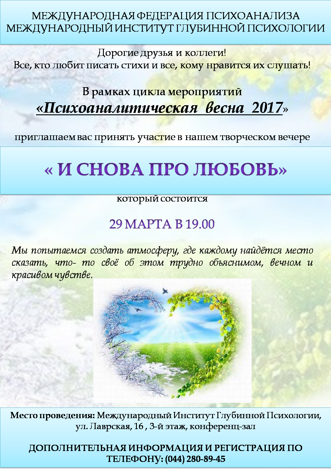 Творческий вечер « И снова про любовь» в рамках цикла мероприятий «Психоаналитическая весна 2017»»