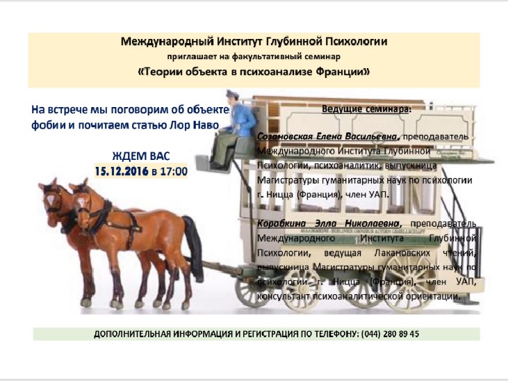 17 ЯНВАРЯ В 19:00 состоится лекция КЛИНИЧЕСКОГО ПСИХОЛОГА, ПРЕПОДАВАТЕЛЯ УНИВЕРСИТЕТА НИЦЦЫ (ФРАНЦИЯ), ПРЕПОДАВАТЕЛЯ МАГИСТРАТУРЫ ГУМАНИТАРНЫХ И СОЦИАЛЬНЫХ НАУК ПО ПСИХОЛОГИИ ЖАНА-МАРКА ГАЛЛАНА «ЗАДАЧИ И ФУНКЦИИ ИМЕНОВАНИЯ В ПСИХОАНАЛИЗЕ» От забывания имен у Зигмунда Фрейда к отклонению Имен Отца у Жака Лакана именование и его отклонение в именах собственных обретает особый статус в психоанализе. В ходе […]