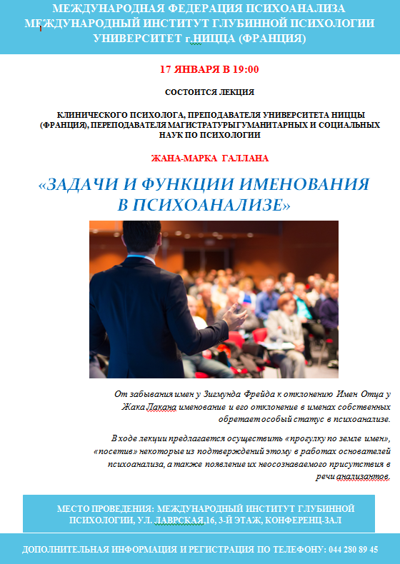 Лекция французского психоаналитика Жана-Марка Галлана «Задачи и функции именования в психоанализе»